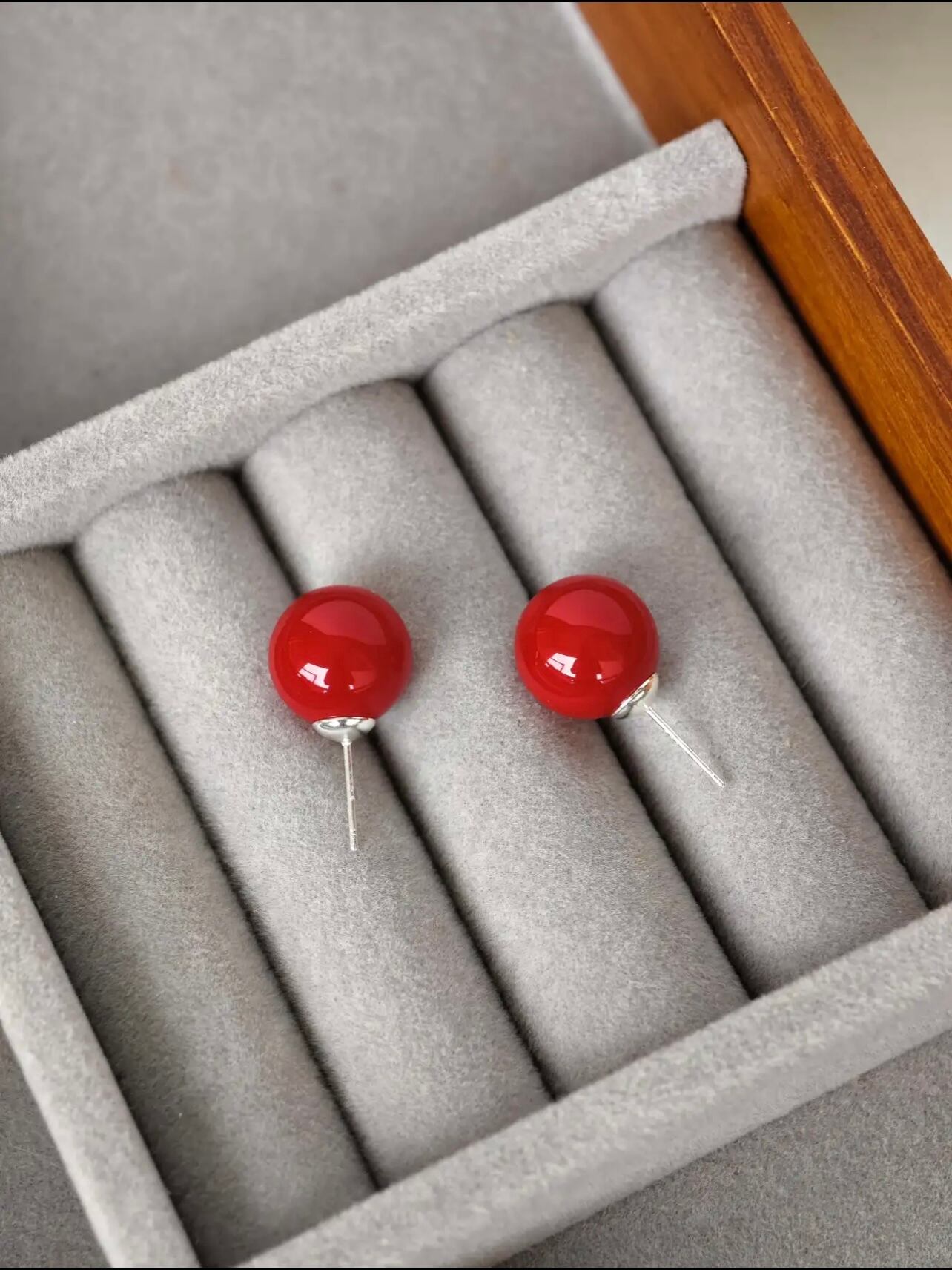 【ブルックス】14mm ガラスパールピアス 赤の大粒 レッド系 冬コーデ 大人可愛い 上品 925針 アレルギー対応